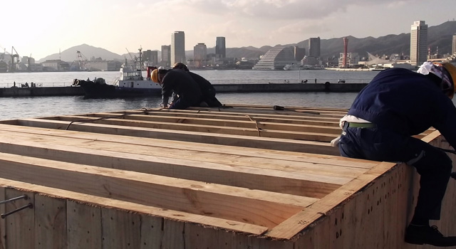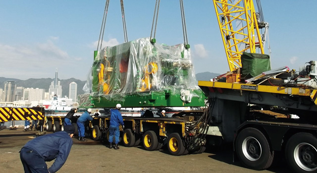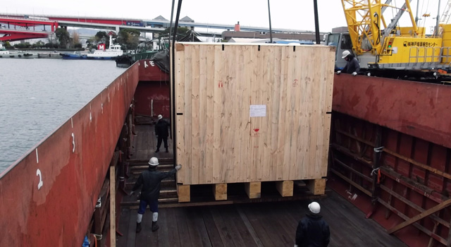 170トンにも及ぶ超重量貨物の梱包・艀積みにも対応